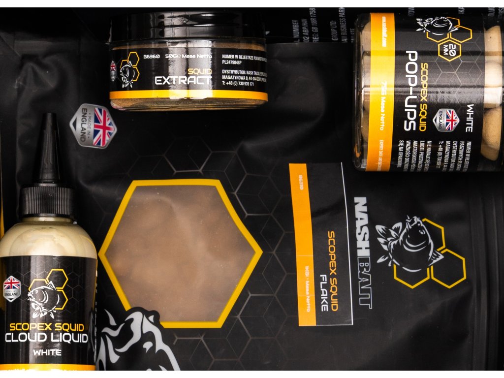 Legendárna receptúra z kuchyne Nashbait od Nash – láme rekordy už viac ako 30 rokov a dodnes chytá tie najväčšie kapry. Pre kapra je toto krmivo za každého ročného obdobia veľmi výživné a ľahko stráviteľné. Je obohatené atraktorovým balíčkom Nashbait Squid Extract, Red Liver Oil a populárnou esenciou Scopex No.1.
